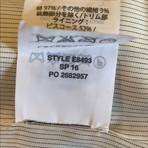 Jacket - bracelet sleeves. Two front zipper pockets. Gold zipper front closure. Lined. Wear open or closed. Colored trim on cuffs.