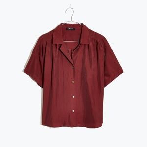 NWT Madewell Silk Camp Shirt Burgundy Sz S