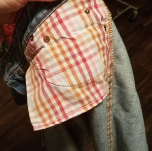 These have zero stretch. Semi low rise. Cute inside pocket detail. No flaws that I can see.