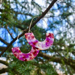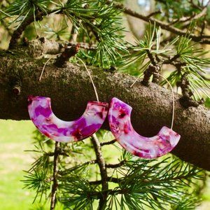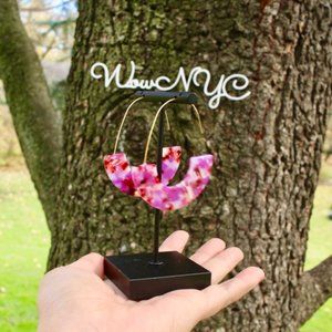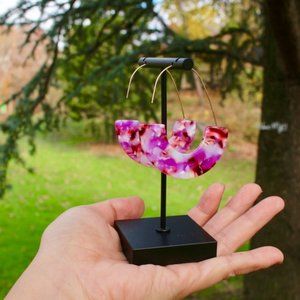 New Baublebar Pink Purple Faidra Thin Oval Hoop Drop Acrylic Earrings