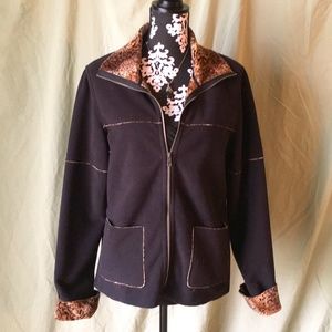 Vintage 90's Zip Up Black Leopard Trim Soft Jacket