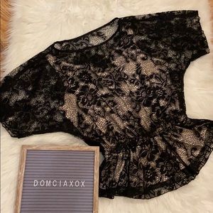 Classy and sexy women’s peplum lace blouse by Dressbarn