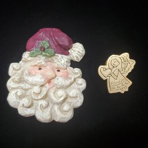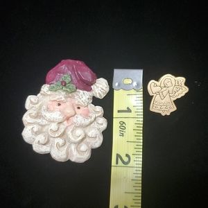 Beautiful three dimensional textured Santa pin and cute small gold angel pin. Unused/like new condition!