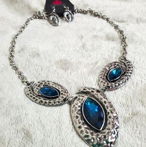 New with tags Paparazzi Silver/Sapphire Necklace & Earring Set.