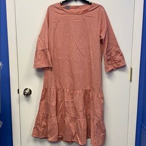 Like new. Worn a couple times. Needs a good iron. In great condition. Basically like new. Modest goes below the knees. Light airy swing dress