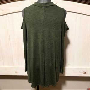 Green Long Sleeve Cold Shoulder Top
