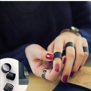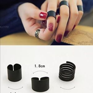 Black Adjustable 3 Piece Rocker/Punk Ring NEW