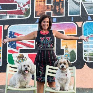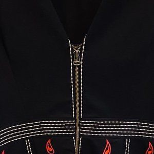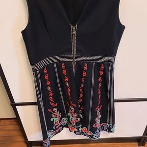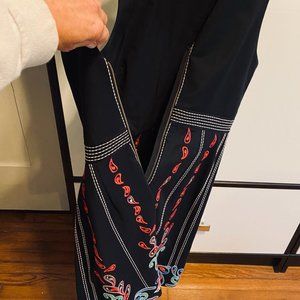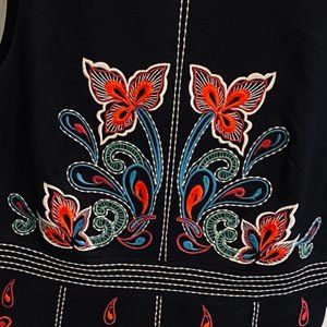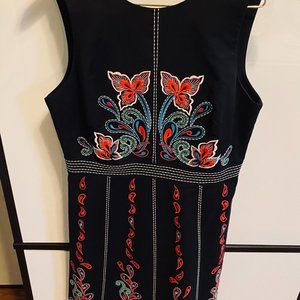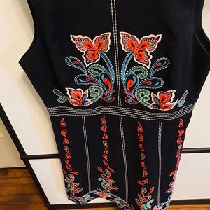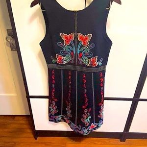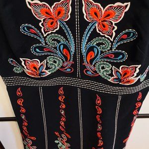 Again, this dress is brought to you, JUST in time for the holidays...or a great Holiday photo. As you can see, it looks adorable with your dogs in front of a colorful sign. :) From Anthropologie in 2017 and worn maybe 3 times. In this holiday card photo obviously. I feel like this is a traditional Swedish design by Maeve on the dress. Zips from the back & made from a soft cotton. Great for summer or winter with a sweater and tights. You will love it. Too small for me now post pandemic. Length: 28 inches, Pit to Pit: 17 inches and waist is 15 inches.