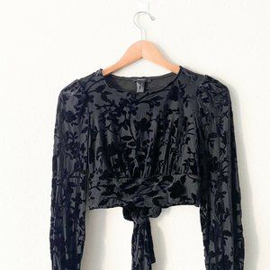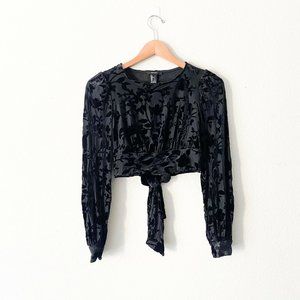 Forever 21 Holiday Velvet Cropped Top Tied Long Sleeve Open Triangle Back Size S