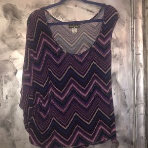Super Fun Top by Baby Phat Authentic. This pretty top is Stylish and Different as one sleeve a short abs the one long creating a dressy effect. Wear with you favorite jeans or black pants/skirt for any occasion! Beautiful purples are the colors. Worn twice, like new condition.