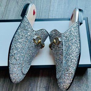 🎄Gucci🎄Glitter Silver Princetown Loafer