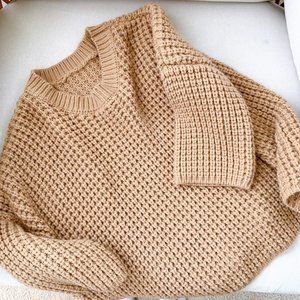 Camel Knit Chunky Sweater 3/4 Sleeves