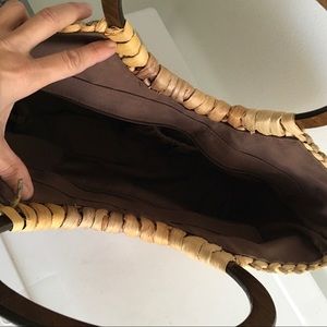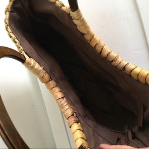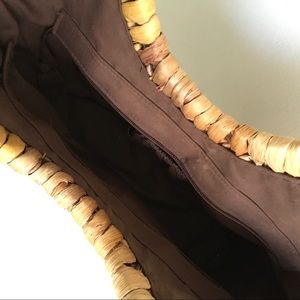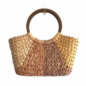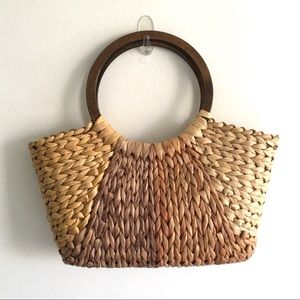(SOLD) Straw Tote Bag With Round Wood Handles