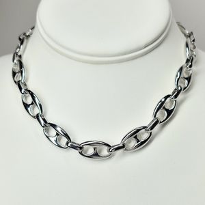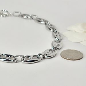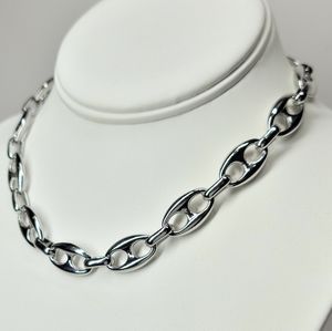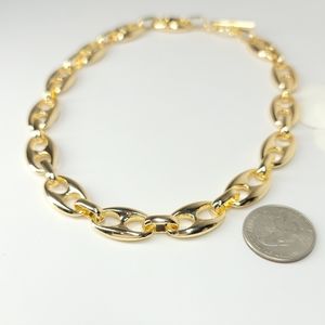 Trendsetting Ultra Chic Puff Mariner Chain Links with Toggle Closure Choker Necklace. Great for layering. Avail in Gold or Silver