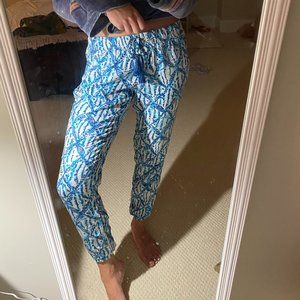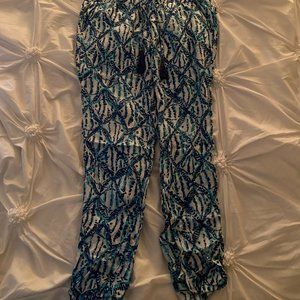 Size small pants in perfect condition, scrunch at the ankle, very comfortable, light, breathable material with cute tassel ties.