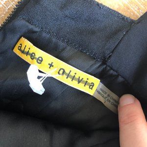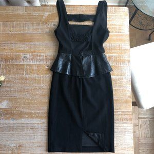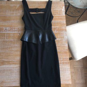 Stunning Alice + Olivia black peplum 'Maddy' dress featuring 100% leather waist.