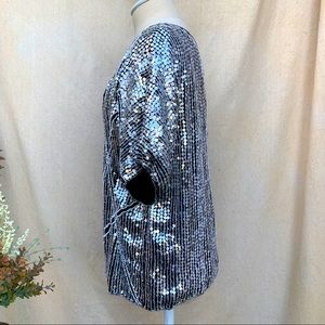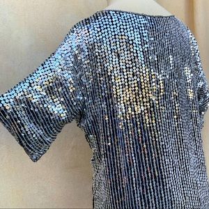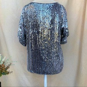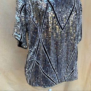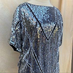 ▪️Amazing vintage Silver sequin top featuring short batwing sleeves, a small faux pearl design on top of the sequin embroidered design