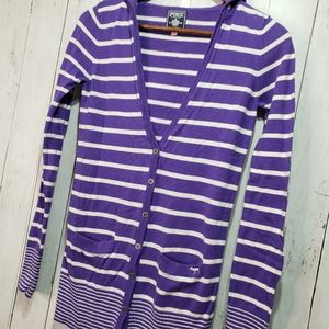 Pink Victorias Secret Purple White Striped Hooded Button Front Cardigan Size Small. Excellent Condition- "Pre-owned". Pit to pit 17", length 28". Offers welcome