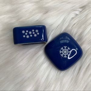 3 vintage ceramic boxes lidded blue