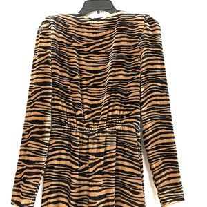 Wayf Arlene Tiger Print Long Sleeve Warp Velvet Dress, Black/Brown, S
