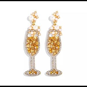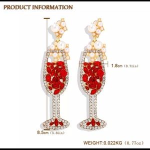 Celebration dangle earrings. Great for festive themes. Rhinestone gem and pearl earring. Colors available are red, green, white and yellow. Size and weight are on the last picture. I found these earrings to be pretty comfortable and not so heavy.