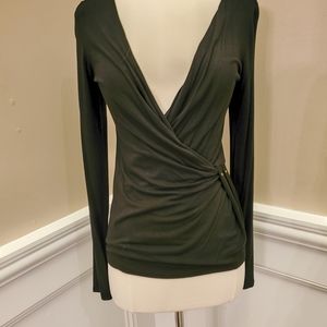 This is a GORGEOUS BNWT wrapped deep v-neck ruched blouse that is incredibly flattering! Has 3 gold studded accents The Limited - his is an XS, but I also normally wear a small and this fit - only tried on-never worn. Please ask if any questions. Closet cleaning so check my other listings!