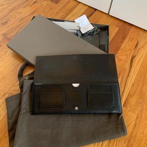 An archival vintage piece — leather purse can be used as a sleek and long flat clutch or wallet. Got lost in my closet after once use—some minor wear, kept stored in box and Rick Owens dust bag — ships with both. Approx. 13" x 4" x 0.5".
