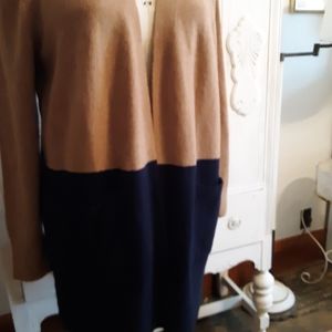 Long, open cardigan from Madewell in camel and navy blue. Two front pockets. Size medium but will also fit a large. NWT