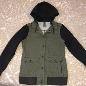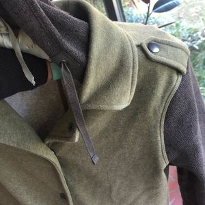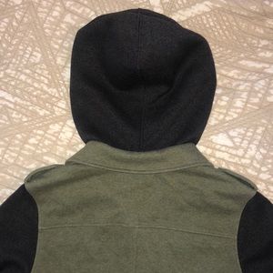 REI brand jacket Utility/Military style in Army green & charcoal black. Hardly worn, perfect condition! Formal looking enough for work attire, although structured sweatshirt material. Very comfortable! Not for frigid temps, but perfect for 50’s temps.