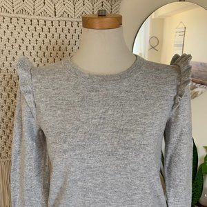 JCREW Ruffle Flounced Large Sleeve Gray Sweater