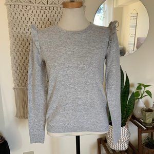 JCREW Ruffle Flounced Large Sleeve Gray Sweater Size Small