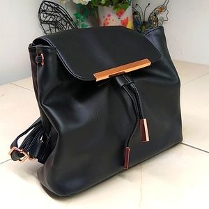 🔴 NWT Black Vinyl Backpack W/Rose Gold Tone