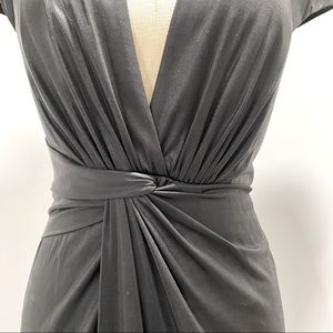 Black foiled jersey cap sleeve gown. Front hidden slit. A dream on your figure. Gold image shown as reference on a body. 27 1/2” waist- but it’s jersey so it stretches. 61” to hem. New with tags- retail at $395, purchased for $200