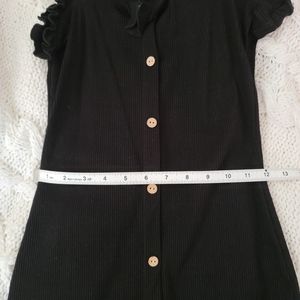 - Black mini dress - Large - Petite | Stretchy material | Sewed on tan buttons.