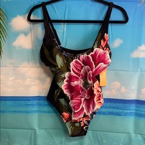 Kona Sol Floral One Piece Swimsuit Medium #AA044