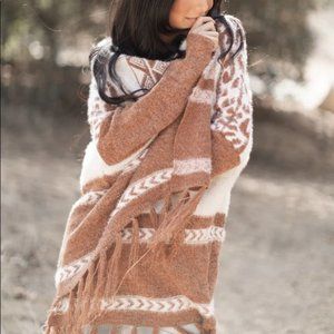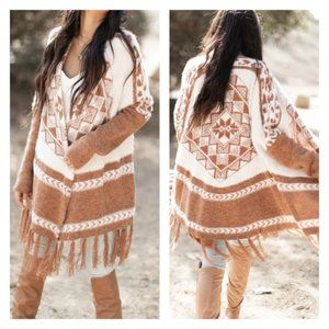 New Cozy Cowichan Print Boho Fuzzy Teddy Blanket Western Cardigan Sweater Coat. Open Front.