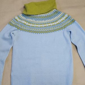 Gorgeous blue and green sweater with solid green cowl/turtle neck collar. The sweater is incredibly soft and in excellent condition. M 208039