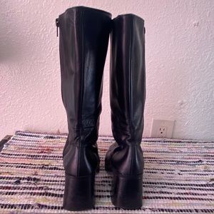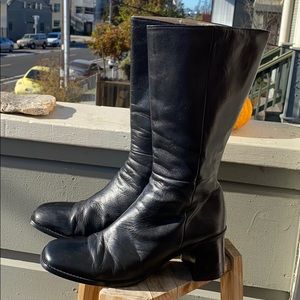 SOLD:.90s Black Leather Mid-Calf Chunky Boots