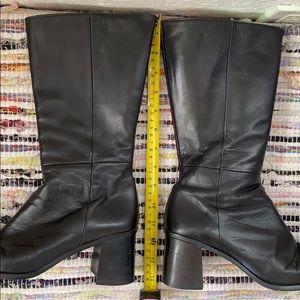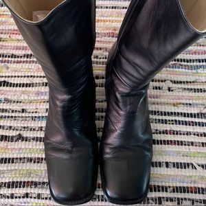 Amazing Japanese black leather mid-calf boots with square toe and chunky 3”in. heel🖤 🇯🇵