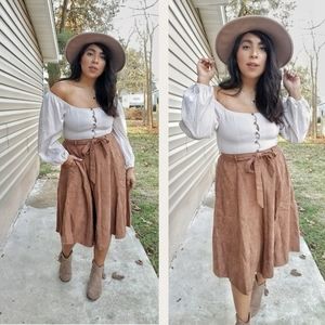This lovely skirt is super sweet with it's removable matching tie belt. Elasticized in the back for extra comfort and stretch. Lined. No closures of any kind! Also available in Tan*