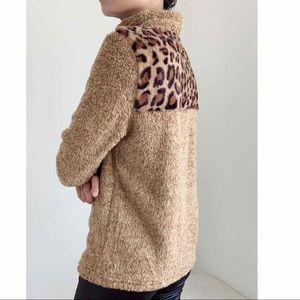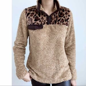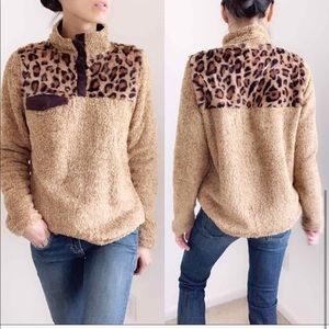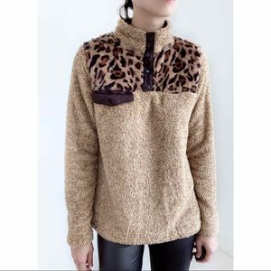 SHERPA SNAP BUTTON PULLOVER SWEATER - LEOPARD