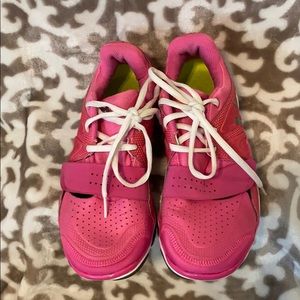Pink Under Armour microG running shoes with Velcro