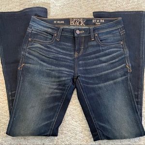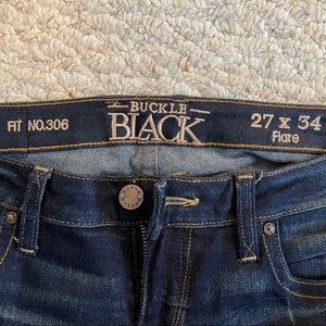 Size 27 flares. 34” inseam. 20” leg opening. Basically brand new. Professionally hemmed at Buckle to 33-1/2” inseam, but all the denim is still there and can be taken out to the full 34”.