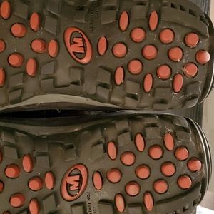Womens used Winter Boots Merrell Polartec Waterproof as you can see these are good shape these are Blackie and warm I live in New Hampshire we need warm boots for winter nothing but the best for my toes theses are expensive boots just outgrew them. We buy all are shoes at a old fashion shoe store were they wait on you so the items are expensive The insides Are still intacted