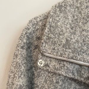 Featuring two front functional pockets. A front zipper and snap buttons. Collar can be worn folded down or popped up. Stylish zippers on the sleeves. Purchased from Nordstrom’s