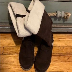 Super cute cozy, warm winter suede boots definitely ready for the winter wear them with cute jeans warm sweater