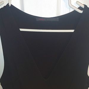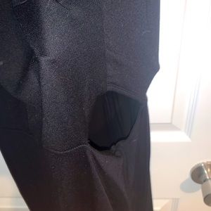 Form fitting black v-neck dress. First picture is from a website I found the dress on. The second is me wearing it at a friends wedding. 3rd pic is close up of the neckline. 4th pic is a close up of the side cutout. There is one on each side. There is also a slit on the left side. The length comes a couple inches below the knee. No zipper, etc, just a pull over dress. In great condition, only worn once. Size Large, all black (sorry if pics look faded, it’s from the flash)
