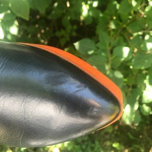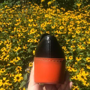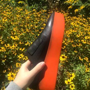 Made in Italy. Fantastic Quality. Leather and elastic form and rubber red sole. Not worn many times. Very slight wear in sole and minor scuffing on right toe that is all shown in pictures (I would guess they were worn less than a handful of times). Comes in a Clergerie Paris drawstring bag that is unrelated to the shoes. Stunning statement shoes.