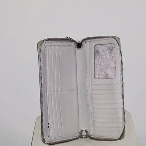 "AUTHENTIC" Michael Kors Jet Set Wallet in tan with silver hardware has 16 credit card compartments, one clear compartment for drivers license/ID, checkbook compartment, 2 bill compartments and a zip closure for coins, your everyday wallet to carry everything you need... In excellent condition no scuffs, no scratches.... "GREAT BUY"!!💕💕