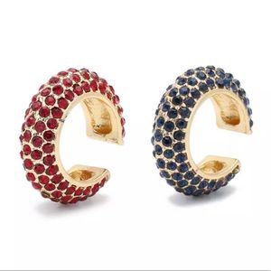 2 Pave Ear Cuff C Shape (red/blue)